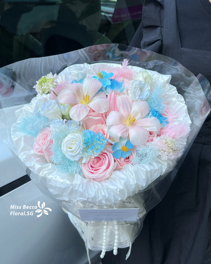 Korea style Tiffany blue & pink fresh flower bouquet flower