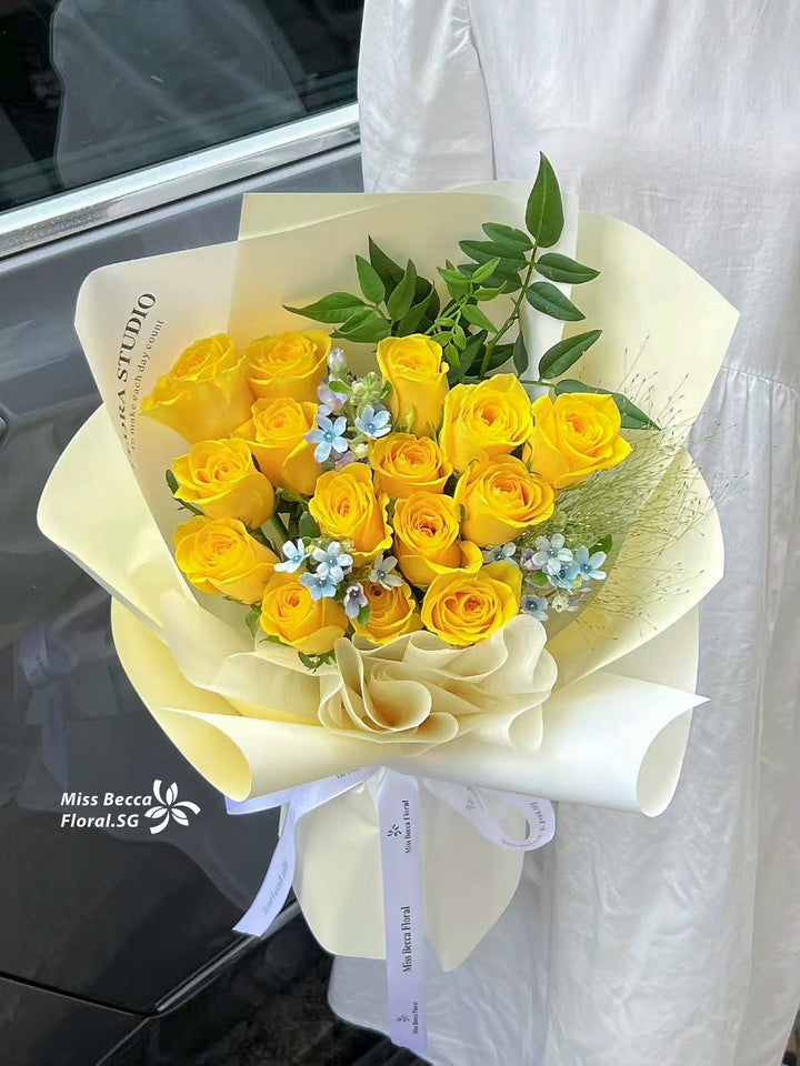 Korea style yellow rose mix style bouquet fresh flower bouquet