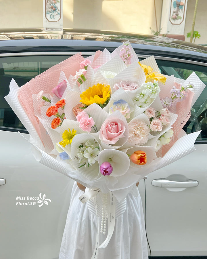 *As all fresh flowers, fillers & foliage are seasonal, they are subjected to changes based on availability.Each arrangement is an individual made ,The Final product will have individual difference.